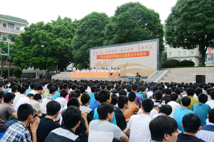 9月2日上午,我院2013级新生开学典礼在灯光球场举行。院长韦红教,院党委书记罗华,副院长陆天云、钟修仁、关菲明,院长助理谭劲涛、郑超文,全体中层正职领导及2300多名新生参加开学典礼,典礼由钟修仁副院长主持。